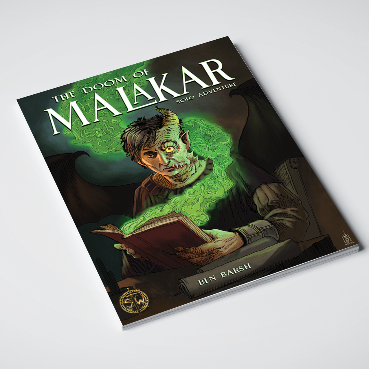 The Doom of Malakar is a solo adventure for Swords & Wizardry written by Ben Barsh, which takes your Swords & Wizardry character into a deadly quest to discover what happened to a rogue magic-user by the name of Malakar. You’ll need the Swords & Wizardry rules to play through the adventure, but what you won’t need is another player. All you need is yourself, to delve into the mysterious events surrounding the ill-fated town of Squall’s End, a sinister plot put into motion by the demon Zulggroz, and the Inn of the Shrouded Stag!
